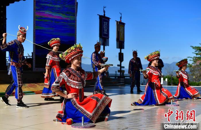 12月3日,华安县高山族舞蹈队在福建省漳州市官畲村表演传统舞蹈。中新社记者 张斌 摄