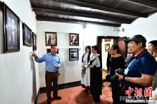 海外华文媒体代表在漳州市平和县坂仔镇的林语堂故居参观。