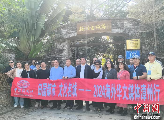 图为海外华文媒体代表在平和县林语堂故居参访并合影留念。曾锦洲 摄