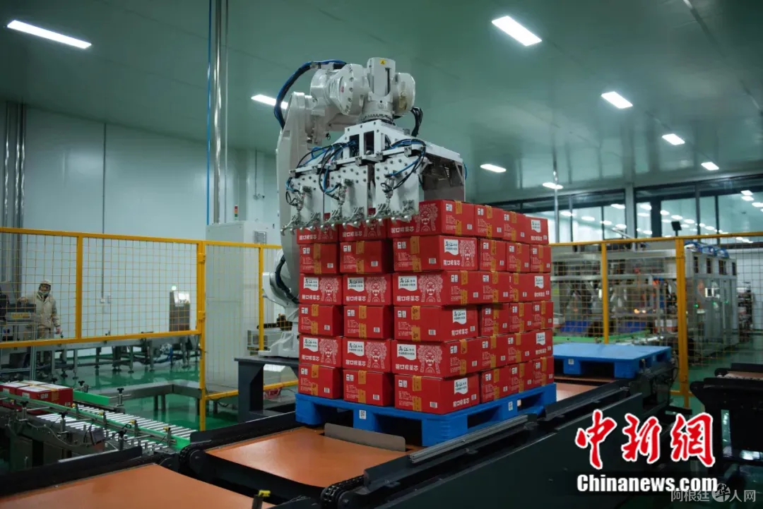 在中国酱腌菜行业唯一一家上市公司,重庆市涪陵榨菜集团股份有限公司的数字化生产车间内,切分、筛分、脱盐、脱水、拌料、分袋、灭菌、装箱码垛,一系列的全流程操作解放了工人双手,高效又环保。