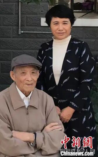 2018年10月,常小梅(右)和父亲常志强的合影(资料图)。2022年12月29日,南京大屠杀幸存者常志强去世,享年94岁。常小梅 供图