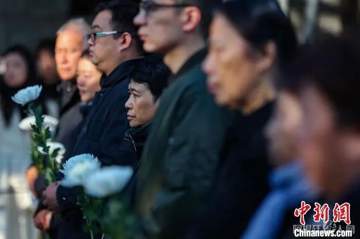 今年12月1日,常志强的女儿常小梅(中)和其他南京大屠杀历史记忆传承人一起祭奠在惨案中遇难的亲人。 中新社记者 泱波 摄