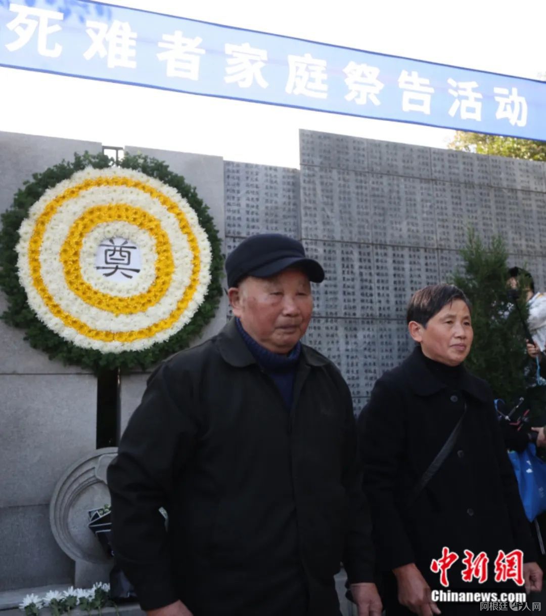 今年南京大屠杀死难者国家公祭日前夕,艾义英在家人的陪同下,在侵华日军南京大屠杀遇难同胞纪念馆参加纪念活动。中新社记者 泱波 摄