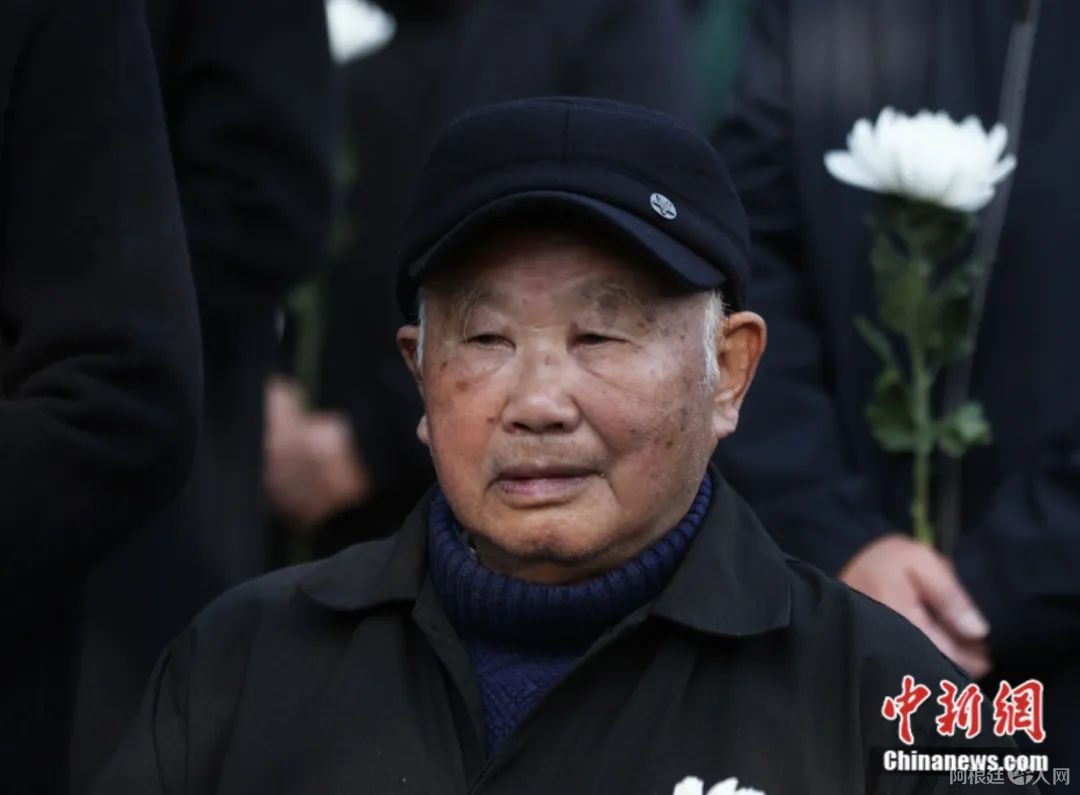12月1日,南京大屠杀幸存者刘民生在侵华日军南京大屠杀遇难同胞纪念馆悼念亲人。中新社记者 泱波 摄