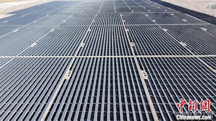 图为12月8日,青海海西格尔木,鲁能海西州多能互补集成优化国家示范工程中整齐排列的光伏板。(无人机图片)薛蒂 摄