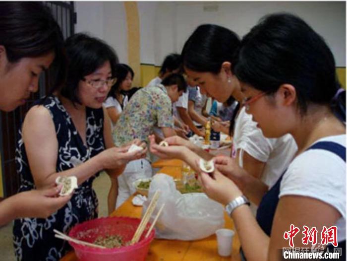 意大利中意国际学校校长李雪梅在教金龙学校的学生们包饺子。(受访者 供图)