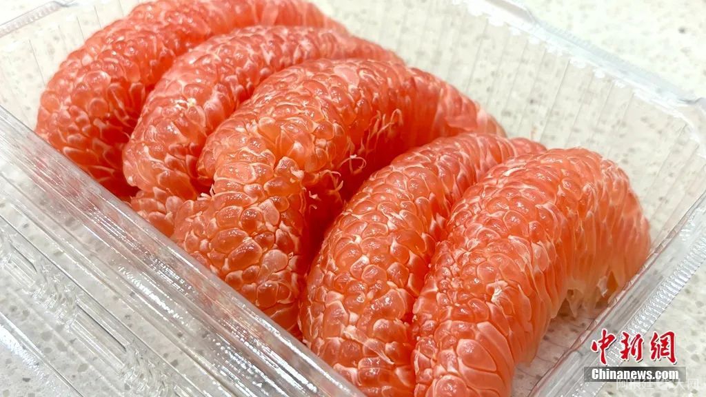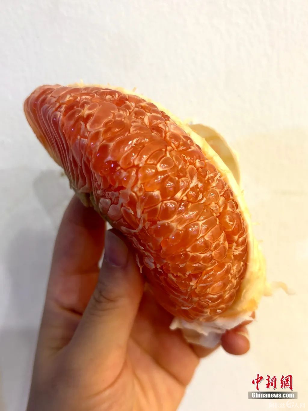 相比于普通的柚子,马家柚的出汁率高达52%,果肉玫红似番茄,汁水充盈似西瓜,晶莹剔透似美玉,口感绝对可以称得上是柚子中的“王者”。