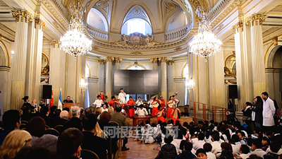 (阿根廷华人网5月30日讯 柳 军/文、图)刚刚参加伊瓜苏第八届国际青少年音乐节的上海戏剧学院附属戏曲学校演出团一行,今天上午在回国前来到阿根廷布宜诺斯艾利斯市市议会,在金色大厅16名戏曲学院学生演奏了民乐《闹台锣鼓》、琵琶独奏《十面埋伏》、唢呐与乐队《百鸟朝凤》、合奏《大闹天宫》等中国民族音乐,让现场的阿根廷师生和听众领略了中国民族音乐的魅力。