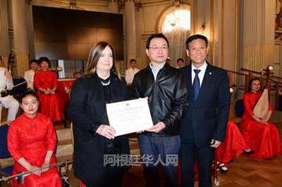 演出结束后,阿根廷布宜诺斯艾利斯市议会第一副议长卡门·波谢朵和袁建平议员向上海戏剧学院颁发 “演出为文化有益活动” 表彰证书。以奖励上海戏剧学院为促进中阿两国文化交流所做出的积极贡献。
