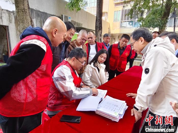 图为泉州市侨联、南安市侨联、美林街道办事处、美林文化研究会等各方工作人员共同翻阅族谱,帮助印尼华裔青年黄海玲寻根。 南安市侨联 供图
