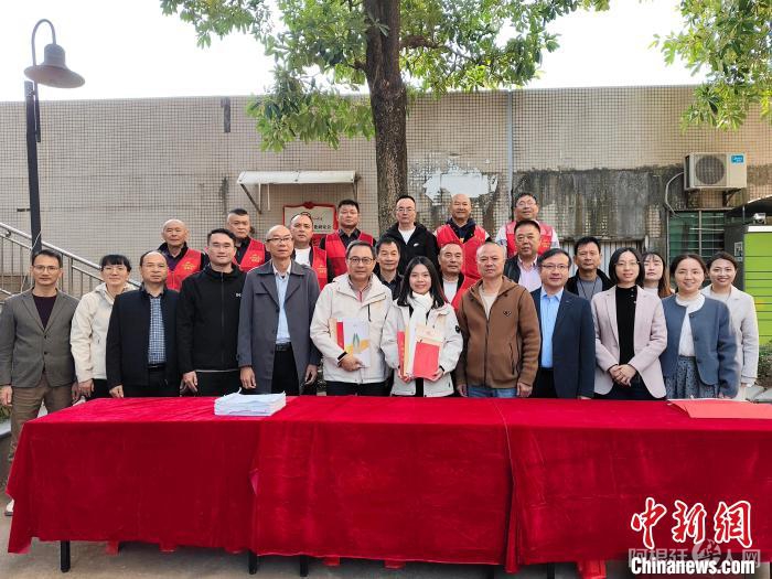 南安市侨联、美林文化研究会向黄海玲赠送《南安华侨志》等书册,以及印有黄海玲在东头角落这一派系族谱信息的册子。 南安市侨联 供图