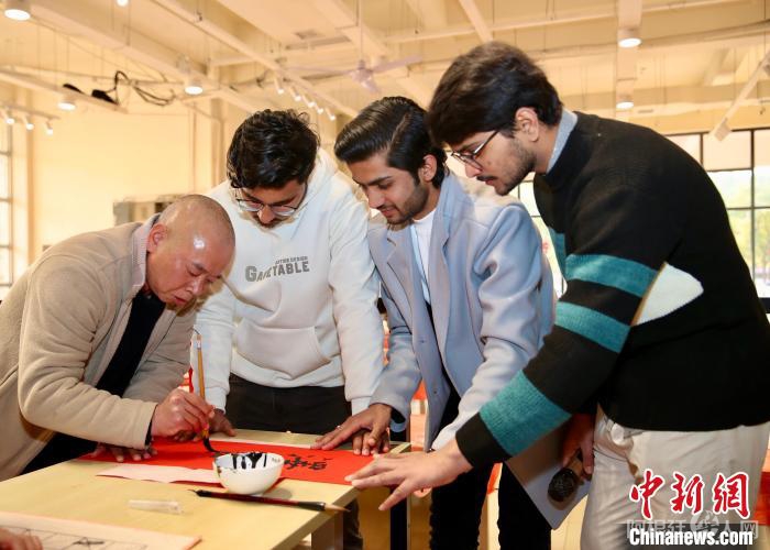 中新网南昌1月25日电(卢梦梦 李琴)新春将至,年味渐浓。连日来,在江西,不少外国友人走进学校、社区等地,沉浸式感受传统中国年味。