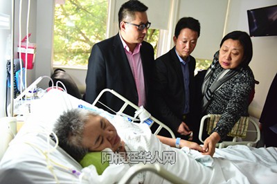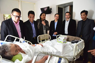 (阿根廷华人网6月3日讯 柳 军/文、图)今天下午,中国驻阿使馆侨务领事,阿根廷华助中心负责人,旅阿侨团侨领及华人律师一同来到医院看望、慰问患病旅阿侨胞,给家属送去慰问金,并热情帮助他们处理相关法律事务,争取早日使患病侨胞回国接受治疗。患病侨胞家属对华助中心及侨领们的帮助表示诚挚谢意!