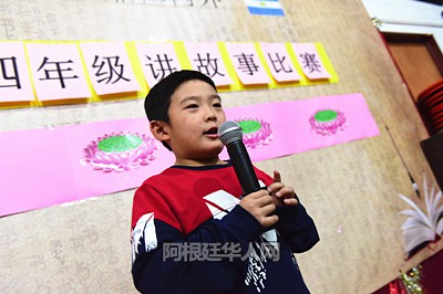 参加今天讲故事比赛的是该校一年级至四年级的小学生,他们有的朗诵诗歌,有的讲故事,有的朗读课文,分别讲述了寓言故事,中国古诗和课堂上学习到的内容。学生们通过上台表演,加深了学习效果,并得到了表达能力和自信心的锻炼。