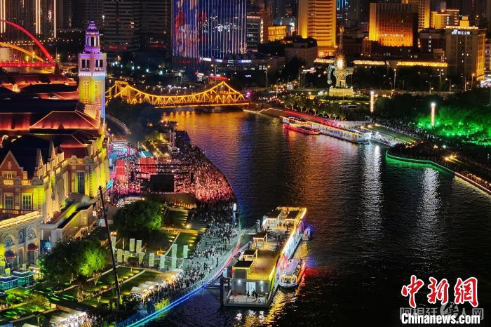 天津海河风景宜人,两岸建筑充满异域风情。图为2023年9月,天津“大运河-海河”项目中首座新建成的码头“津湾码头”开启试运营。(无人机照片) 中新社记者 佟郁 摄