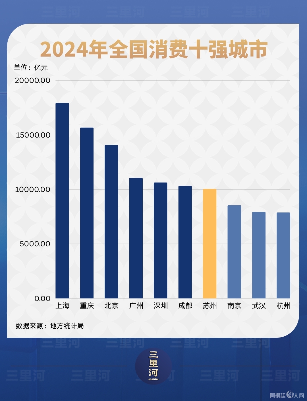 苏州,由此成为继上海、重庆、北京、广州、深圳和成都之后的又一个万亿消费之城。