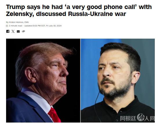 报道还称,当日晚些时候,在与普京通话后不久后,特朗普还与乌克兰总统泽连斯基进行了电话交谈。