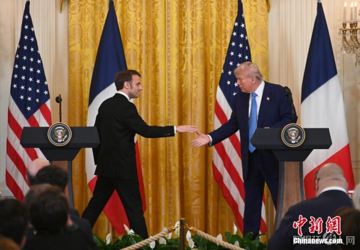 中新网2月25日电 综合外媒报道,当地时间2月24日,法国总统马克龙到访美国,在白宫与美国总统特朗普举行会晤,寻求对乌克兰的共同支持,并推动跨大西洋双向投资。