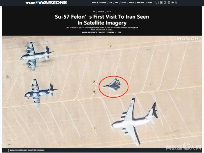 卫星图片显示苏-57在伊朗机场停留。图/美国“战区”网站