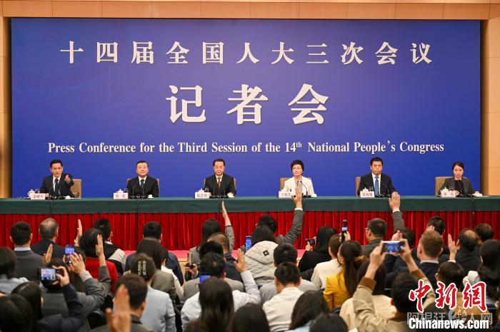 3月9日,十四届全国人大三次会议在北京梅地亚中心举行记者会,民政部部长陆治原、人力资源和社会保障部部长王晓萍、住房和城乡建设部部长倪虹、国家卫生健康委员会主任雷海潮就民政、就业和社会保障、住房、卫生健康等相关问题回答中外记者提问。 中新社记者 田雨昊 摄