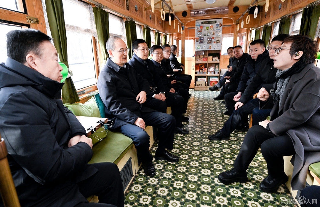 3月15日,吉林省委书记黄强乘坐有轨电车体验城市文旅。图片来源:吉林日报