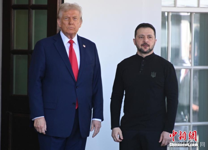 当地时间2月28日,华盛顿,图为特朗普在白宫迎接泽连斯基抵达。中新社记者 陈孟统 摄