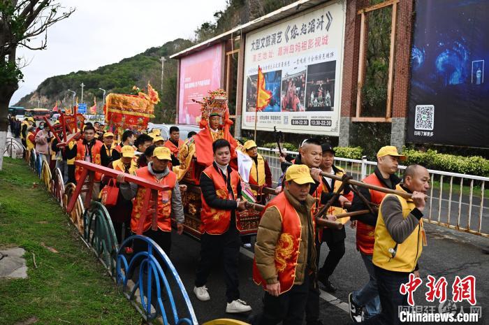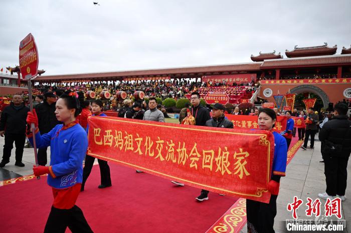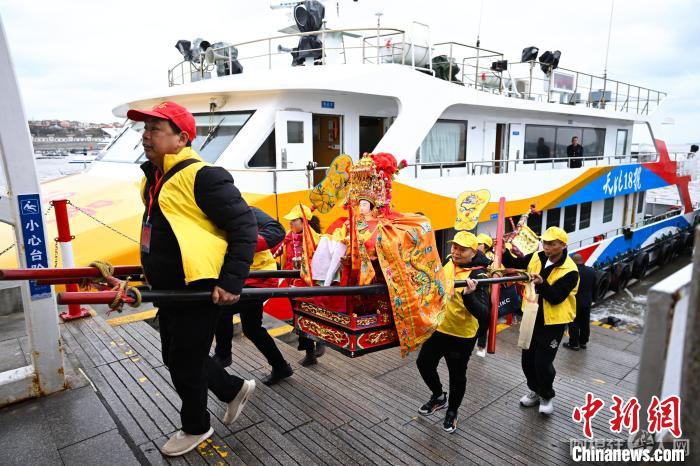 3月29日,正值农历三月初一,“天下妈祖回娘家”启动仪式在福建省莆田市湄洲妈祖祖庙天后广场举行,来自海内外的一百多家妈祖文化团体代表,共计近万名嘉宾汇聚一堂,共襄盛举。天下妈祖,祖在湄洲。相传,妈祖的诞辰为农历三月二十三日。每年的妈祖诞辰日前后,海内外的妈祖信众都会翻山越岭,远道而来,恭送分灵妈祖回到湄洲岛谒祖进香,以“回娘家”的方式寻根问祖,这一习俗被坊间亲切地称为“天下妈祖回娘家”。图为各地宫庙代表陆续抵达福建湄洲岛码头。中新社记者 吕明 摄