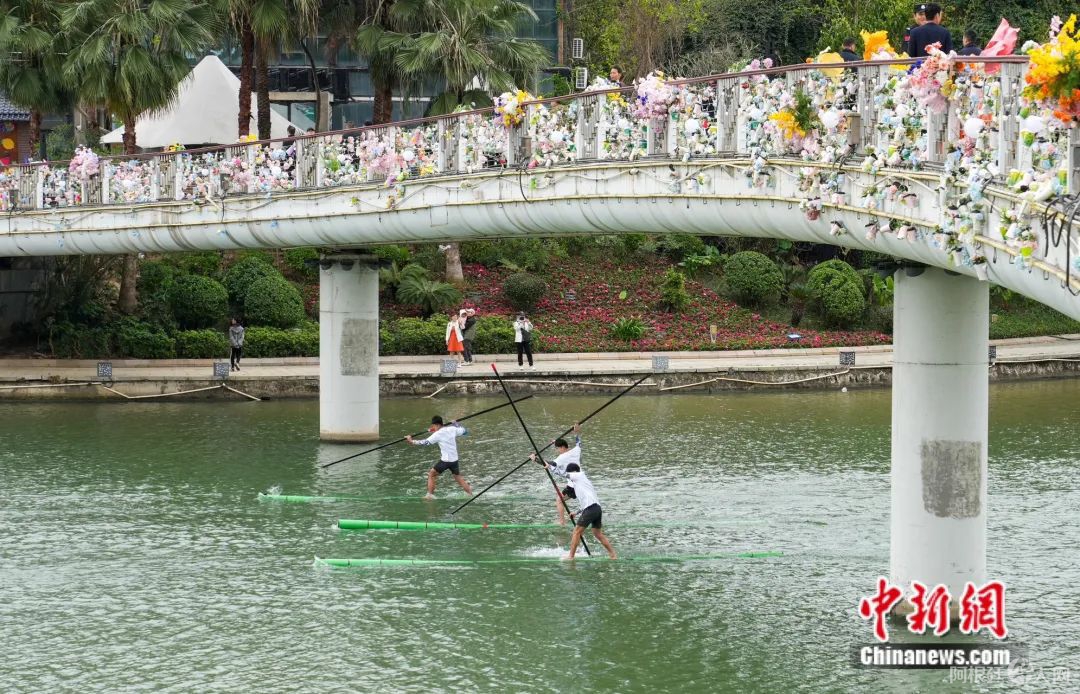 “大侠”们表演独竹漂