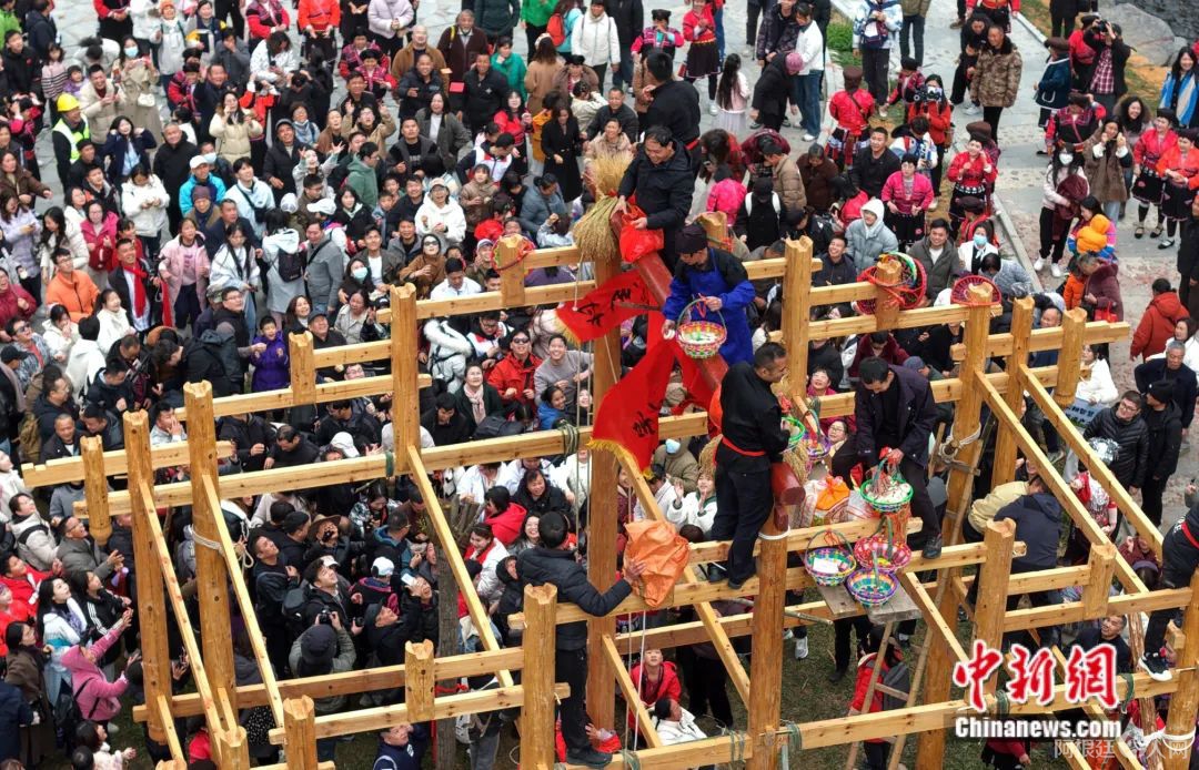 图为民众参与当地瑶家建楼上梁仪式活动。杨宗盛 摄