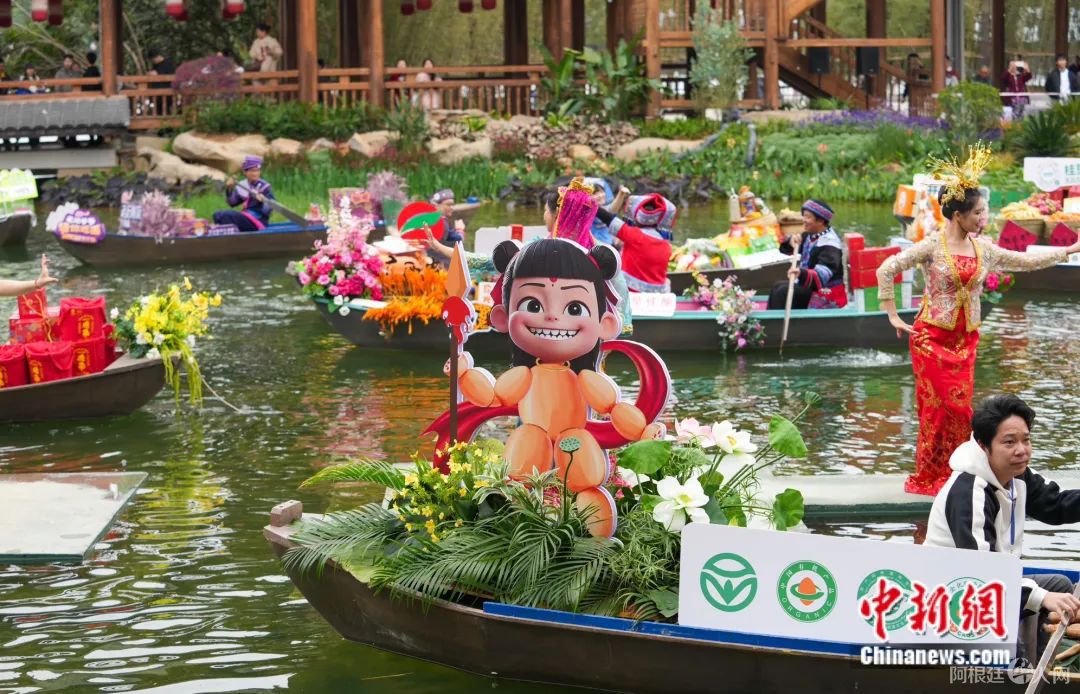 彩色小船满载广西水果鲜花、特产