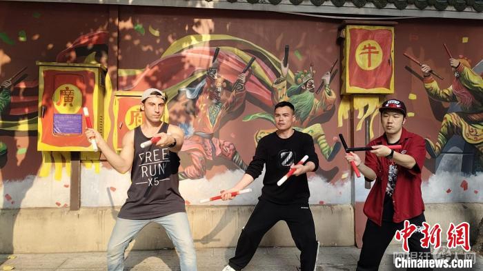 澳大利亚动作演员阿德尔(Adel)在社交媒体刷到英歌舞视频后,辗转联系到广州扬传义艺术团梅花英歌队队长李灏。“他几年前就过来学,接触到英歌舞的横槌后,还特意带槌回去练习。”李灏表示,这位“洋弟子”非常喜欢中华武术文化,今年2月还在广州一起跳英歌舞。