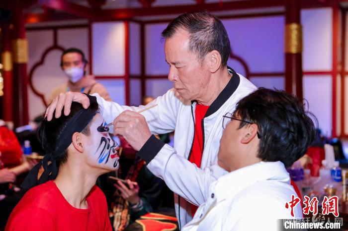 2025年2月春节期间,陈来发在深圳为英歌舞队员化妆。(受访者供图)