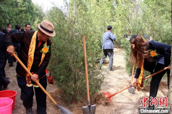 4月4日,陕西黄陵,海外侨胞共植侨山柏。中新社记者 阿琳娜 摄