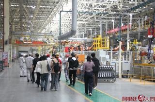 (图为代表们在比亚迪产业园参访)