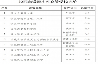 中新网6月11日电 据教育部网站消息,6月11日,教育部发布关于拟同意设置本科高等学校的公示。