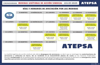 航空保护与安全技术及员工协会(Atepsa)通过一份公告表示:“工会行动的合法措施仅影响到起飞航班,也就是说航班授权和地面车辆会受到限制。在公布的时间段内,不会接收或发送飞行计划。”