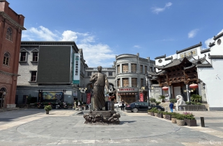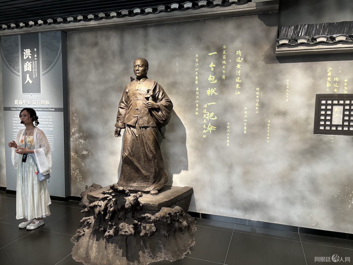参访团重点参观了清代钱庄、镖局和报馆等特色场馆。在百年钱庄内,精巧的银票印版和账册让海外媒体人直观感受到古代金融体系的发达;镖局陈列的各式兵器与契约文书,则生动再现了当年商路护卫的江湖传奇。令人印象深刻的是郑板桥题写的“吃亏是福”四个大字,深刻诠释了“里仁为美 ·重义轻利” 的洪商精神,也道出了“利他”的商业本质,造就了千年昌盛的洪商古城。