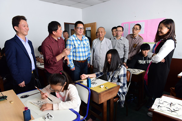 侨务领事陈志军,华助中心负责人严祥兴,向学生和教师分别了解对学习书法的想法和教学情况,当得知学生们非常喜爱书法艺术,教学工作开展的非常顺利时,大家感到非常高兴,鼓励大家坚持做好中国书法艺术的传授,争取让更多的华人子女和阿根廷学生学习书法,将中国书法艺术传播得更久远。