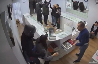 事发时间为上周四晚上19点前。据店内的监控录像显示,持枪歹徒闯入店内,用枪指向准备逃离的顾客和店员。在随后不到一分钟的时间内,歹徒抢走了大量黄金,具体数量暂时不详。