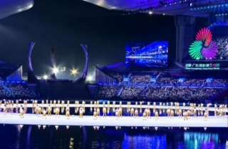 彭高峰称,开幕式在艺术呈现上实现多项突破,创作了《天海一心》《龙腾伶仃洋》等主题乐章,歌颂三地同心、海天交融。同时,借助环形水幕舞台等前沿舞美技术,在体育场内“造出一片海”,让观众沉浸式体验海洋胜景。“舞蹈编排融合了岭南舞蹈中‘水’的灵动意象,生动诠释了粤港澳大湾区依海而生、向海而兴的文化根脉与发展历程。”彭高峰说。