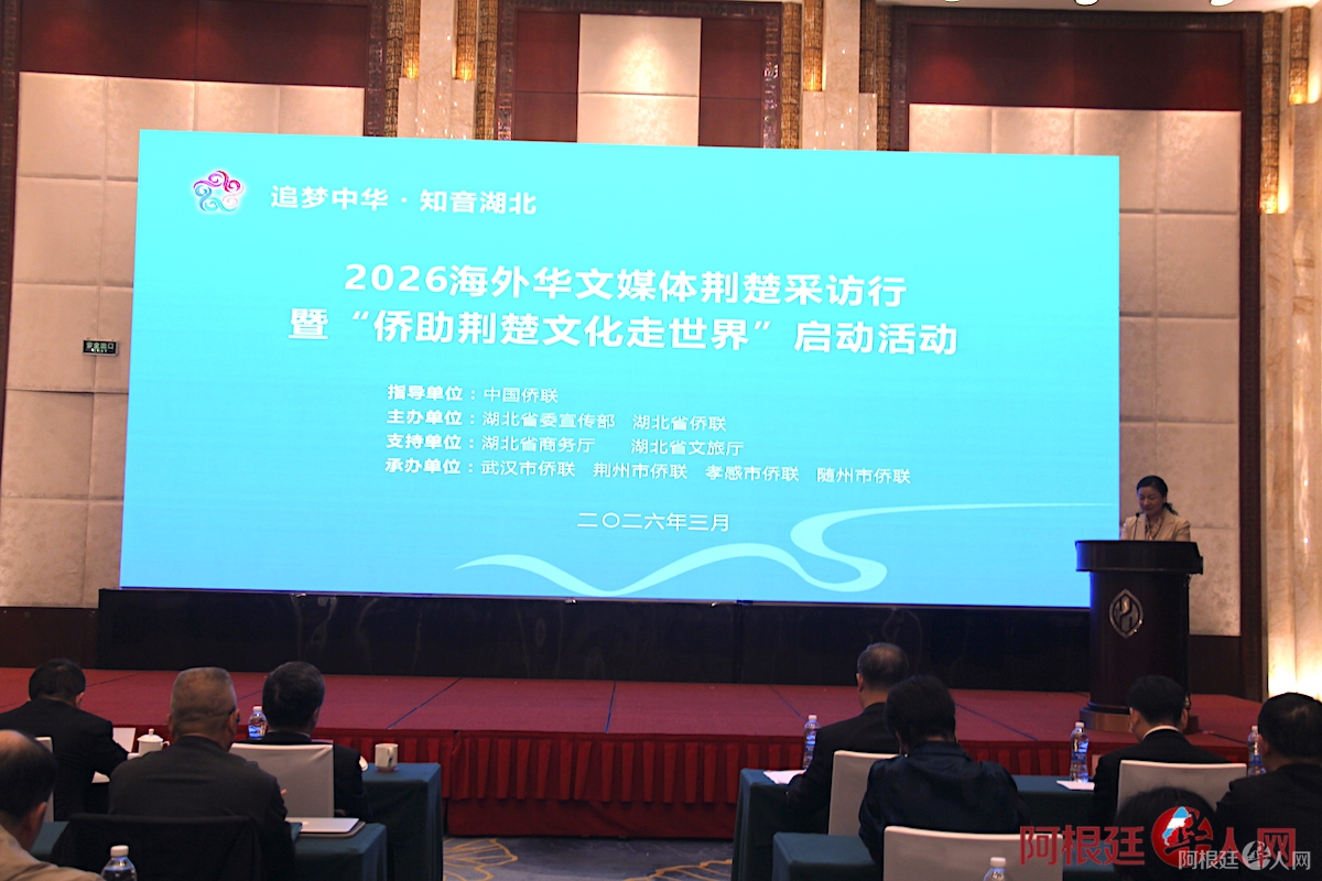 (阿根廷华人网3月26日讯 方绪)春潮涌荆楚,文脉耀神州。3月26日,“追梦中华・知音湖北”2026海外华文媒体荆楚采访行暨 “侨助荆楚文化走世界”活动在武汉正式启动。省侨联党组书记冯伟致辞,省委宣传部二级巡视员李府平讲话。省委统战部副部长江浩,省委外办副主任陈汉华,省商务厅二级巡视员陈斌,省文旅厅二级巡视员童建新,省侨联党组成员、副主席兼秘书长侯继文,武汉市侨联党组书记、主席徐祥忠等出席活动。省侨联党组成员、副主席王慧萍出席并主持活动。