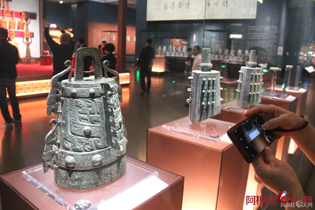 步入《钟鸣寰宇——曾国编钟与礼乐文明展》展厅,一套气势恢宏的曾侯乙编钟复制件瞬间吸引了所有目光。原件1978年出土于随州擂鼓墩,共65件,音域跨五个半八度,十二个半音齐备,至今仍可演奏,被中外专家誉为“世界第八大奇迹”。钟体上3755字错金铭文,是迄今所见最早体现音乐数理关系的出土文献。