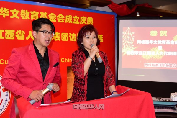 庆典活动由阿根廷著名华裔电视主持人林文正和阿根廷新太阳中西英三语学校校董、中文部主任贾薇主持。