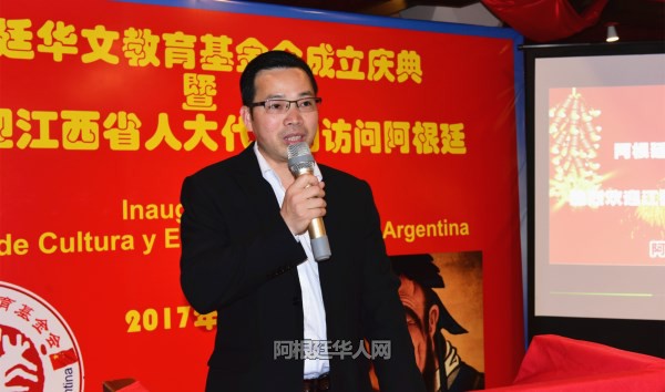 阿根廷华文教育基金会首任会长刘芳勇首先致辞,他说:“阿根廷华文教育基金会,是专门为阿根廷华文教育事业服务的公募基金会。随着中国综合国力的日益增强和国际交流的不断发展,中华文化作为人类共同的宝贵文化遗产日益受到世界众多国家的关注,阿根廷也兴起了学习中文的热潮。大力发展阿根廷华文教育,是阿根廷侨胞传承中华文化、保持民族特性的重要保证,是凝聚侨心、促进阿根廷华侨华人社会发展的内在动力。”