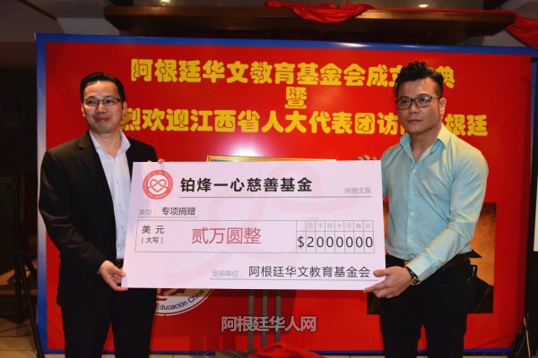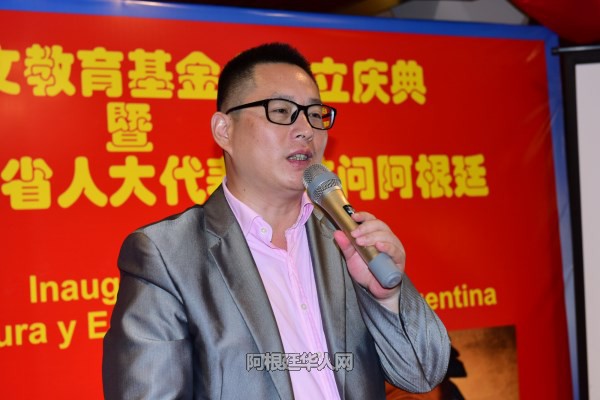 刘芳勇继续说道:“我愿与各位仁人志士,各位鸿儒贤达一起,为阿根廷的华文教育事业贡献我们的爱心和力量;为中华文化的弘扬与发展贡献我们的爱心与力量;为中华民族的伟大复兴,贡献我们的爱心与力量。”