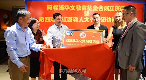 江西省人大常委会马志武副主任,江西省侨联张知明主席,中国驻阿根廷大使馆陈志军侨务领事,阿根廷国会议员秘书Romina女士,阿根廷中国和平统一促进会会长罗超西,阿根廷华文教育基金会首任会长刘芳勇等人,为阿根廷华文教育基金会揭牌。