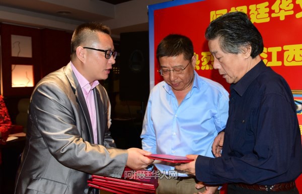 阿根廷华文教育基金会向江西省人大友好访问团回赠礼物。