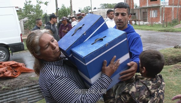 (阿根廷华人网12月19日讯 柳 军/文图)今天上午,阿根廷拉普拉塔华商联谊会在会长董春风的带领下来到该市两处贫民区,为居住在那里的贫困家庭送去圣诞食品,使他们能够渡过一个快乐的节日。布市议员袁建平,拉普拉塔市市长胡里奥·加罗先生参加了捐赠活动。