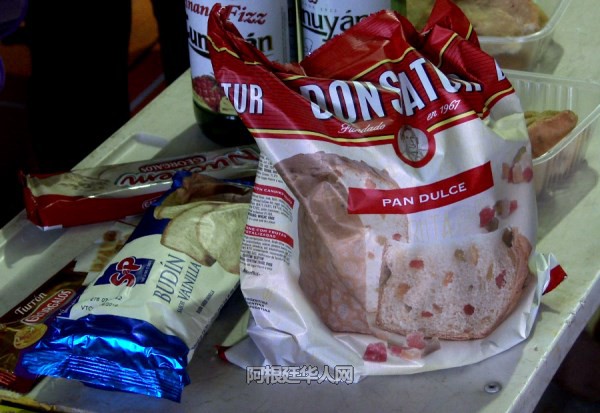 今天凌晨,拉普拉塔华商联谊会成员便来到该市最大的商场,购买了3千份价值20万阿币的圣诞食品,其中有阿根廷人圣诞节日吃的圣诞蛋糕、苹果及菠萝等水果酒、儿童食品等。然后他们又驱车将这些食品送到了两处贫民区,并发送给贫民区的家庭和孩子们。