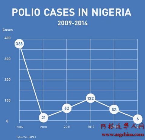 尽管尼日利亚是全球仅剩的三个没有根除小儿麻痹症的国家(另外两个是巴基斯坦和阿富汗),但是我认为尼日利亚不会在这一名单上停留太长时间。今年,尼日利亚仅仅出现了6例小儿麻痹症报告,而去年这一报告数字超过了50例。